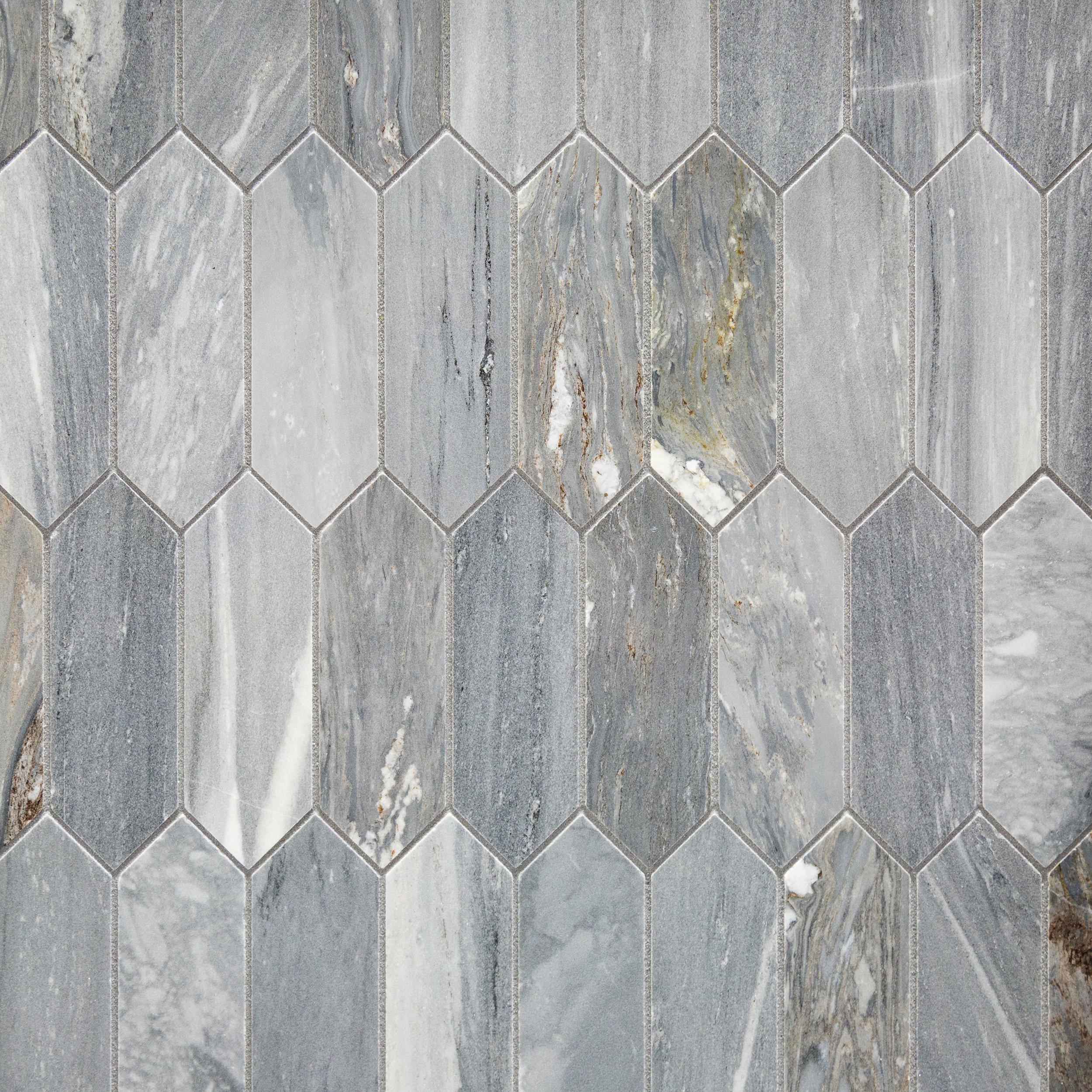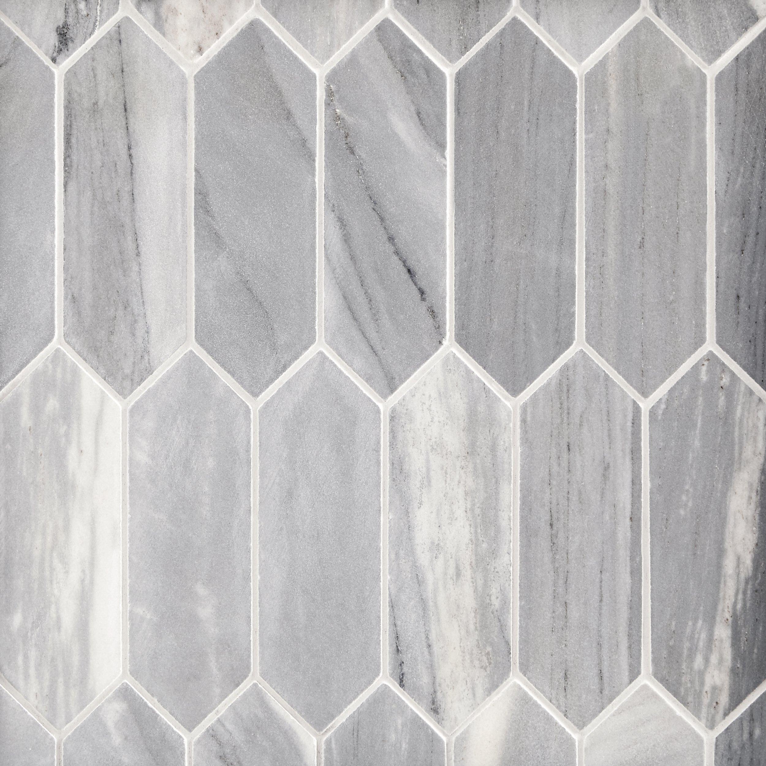 Picket polished marble wall and floor mosaic tile (0.859 sq. Hexagon polished marble and matte metal wall and floor mosaic tile: With many styles to choose from in forever versatile marble, you'll appreciate the unique style of this tile. This tile features luxurious genuine marble in a distinctive elongated picket shape.